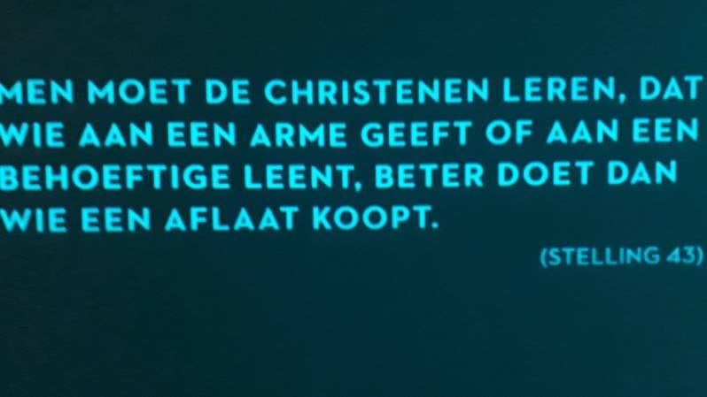 Luther heeft er 95 stellingen over geschreven die hij in 1517 op de kerkdeur van Wittenberg schrijft.